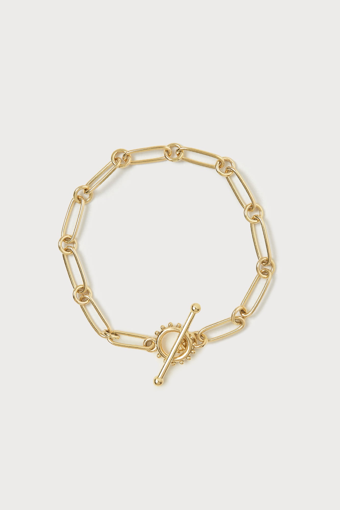 A handmade chain of alternating oval and circle links with a dotted toggle closure.