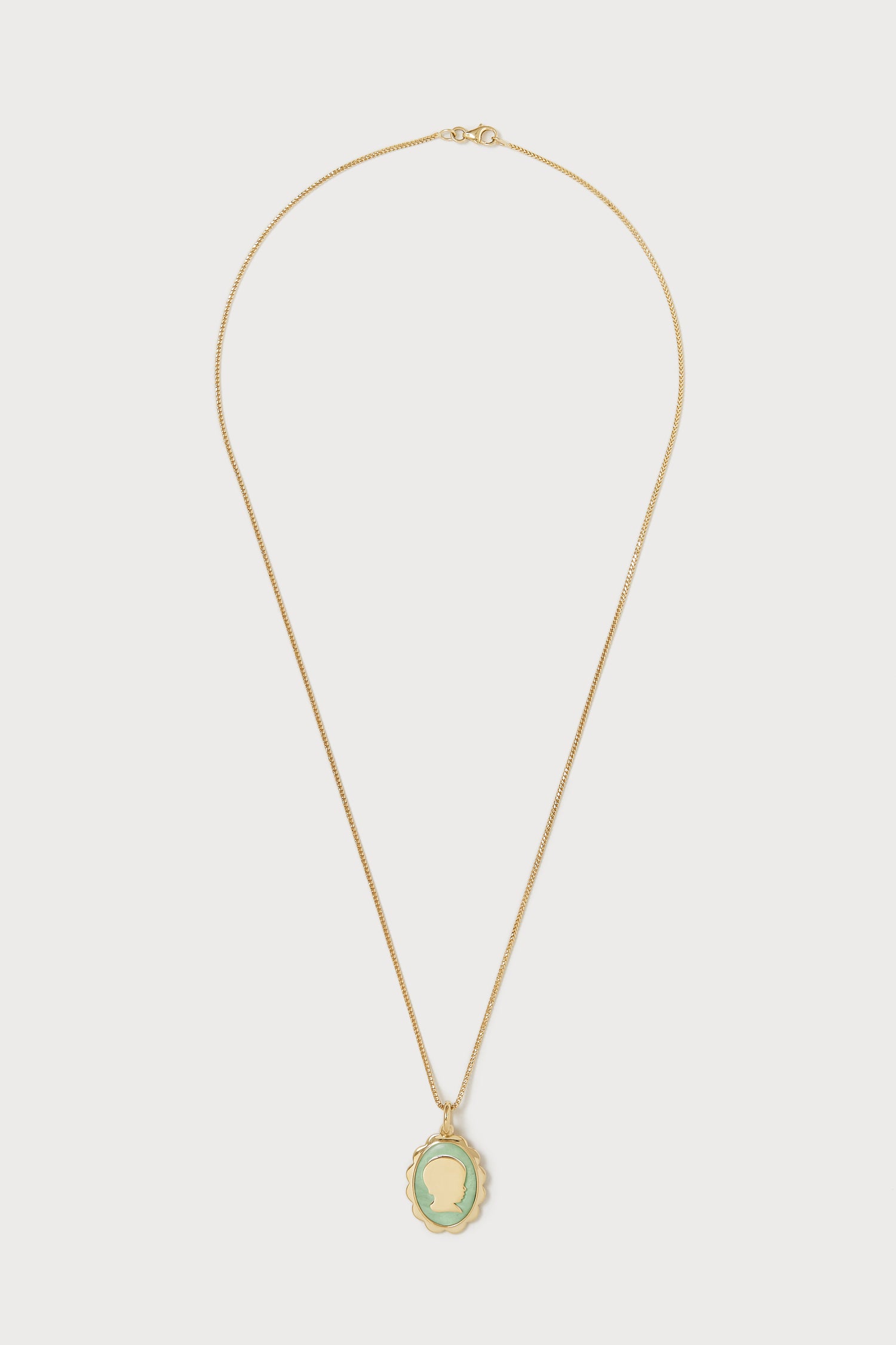 A wearable memento to keep loved ones close. To create this necklace we use a photograph of your choice, trace the silhouette, then cast it into gold. This bespoke necklace has a scalloped border and a hand carved green turquoise inlay.